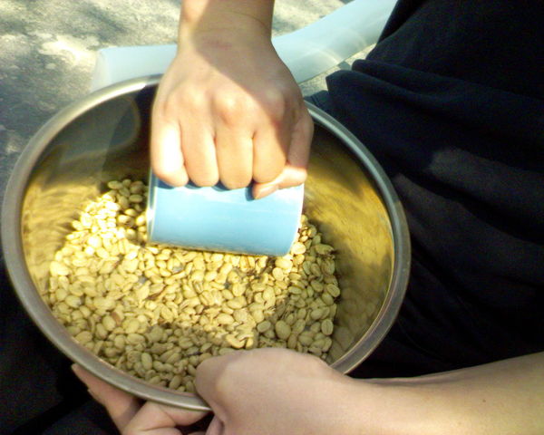 並且拿了一些用鍋子炒好的咖啡豆再外加一些咖啡生豆要跟光光分享